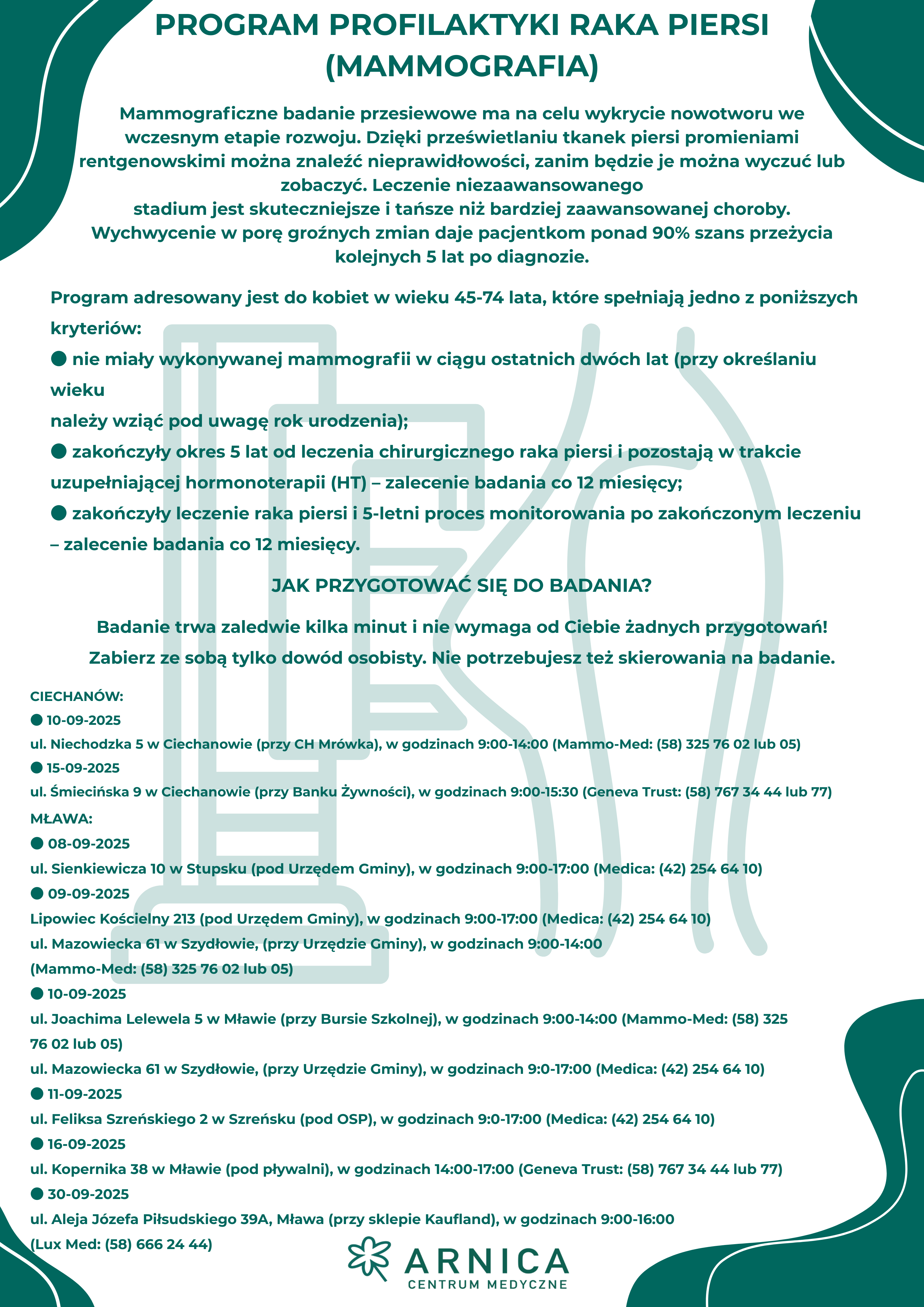 - Program przeznaczony jest dla kobiet w wieku 45–74 lata.